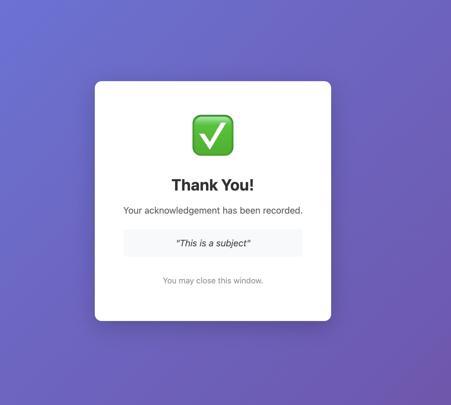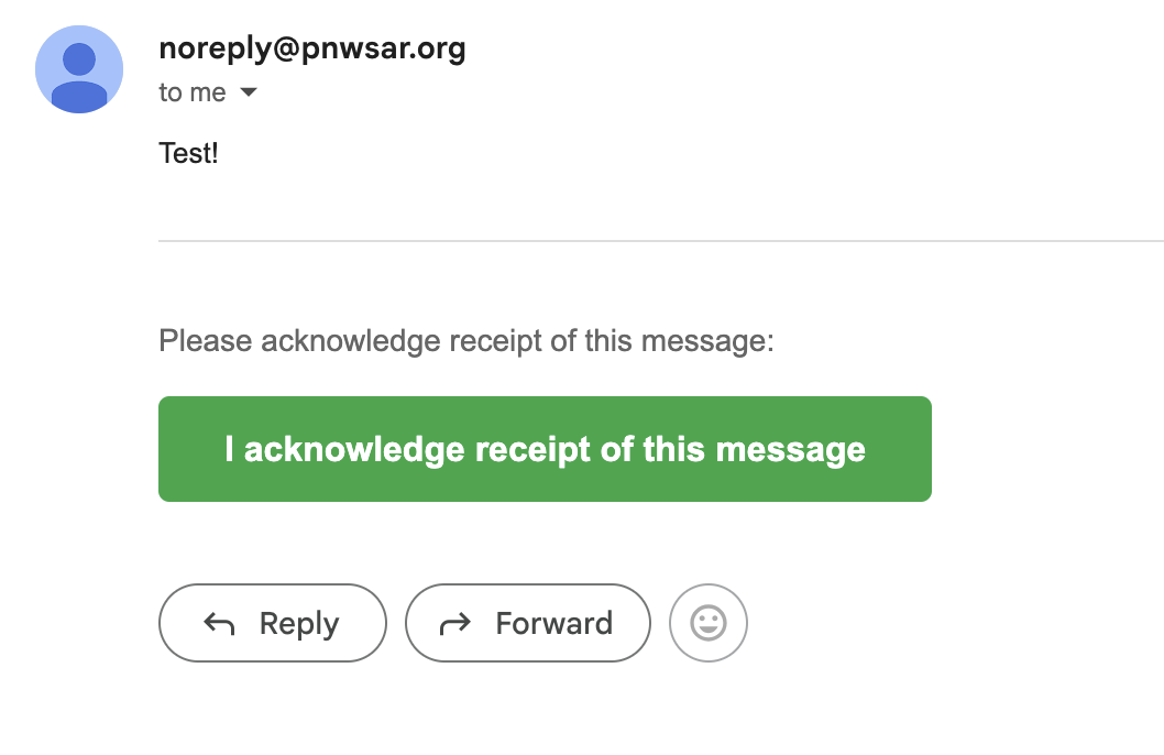 Here is what the email looks like with the required acknowledgement