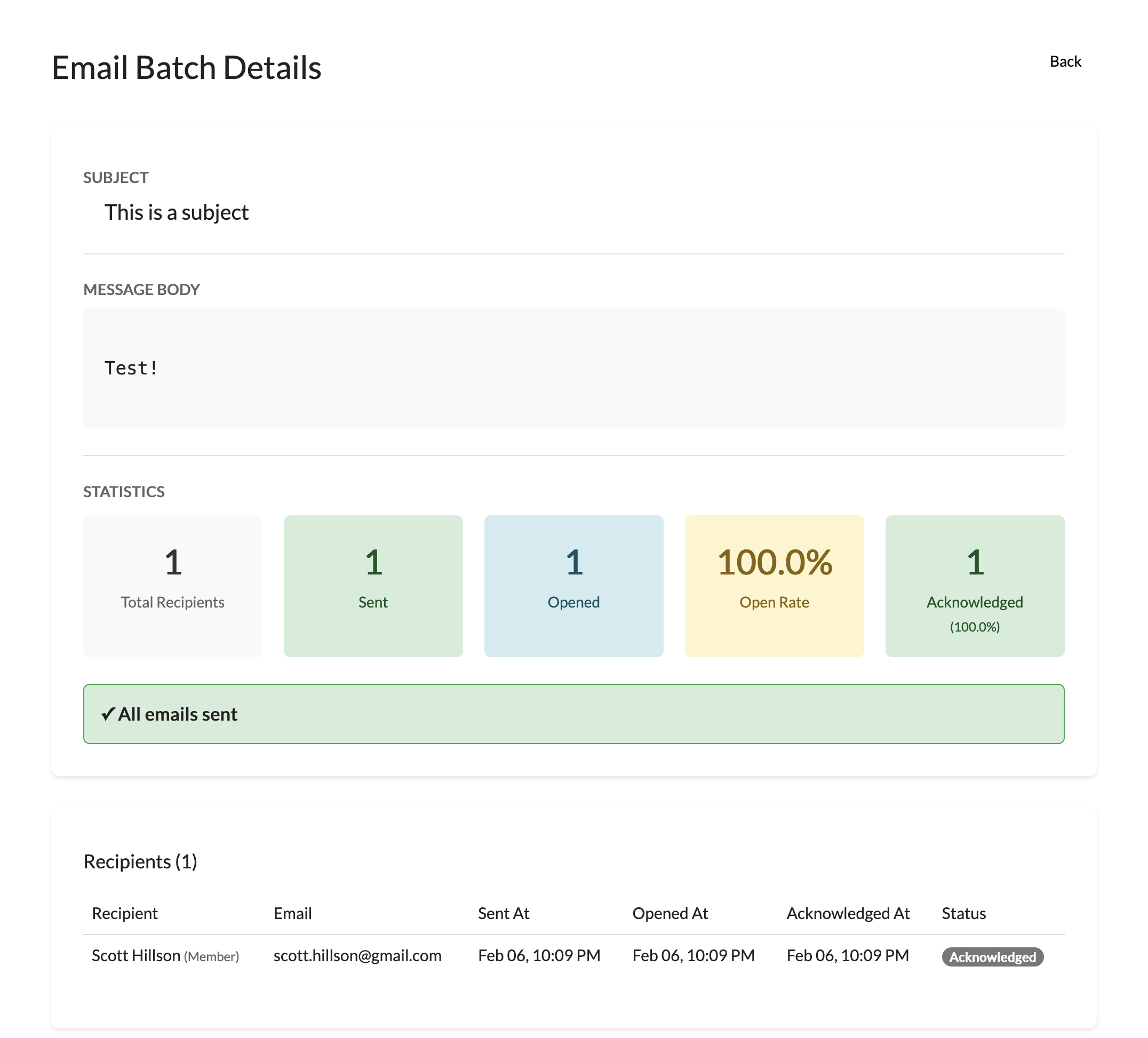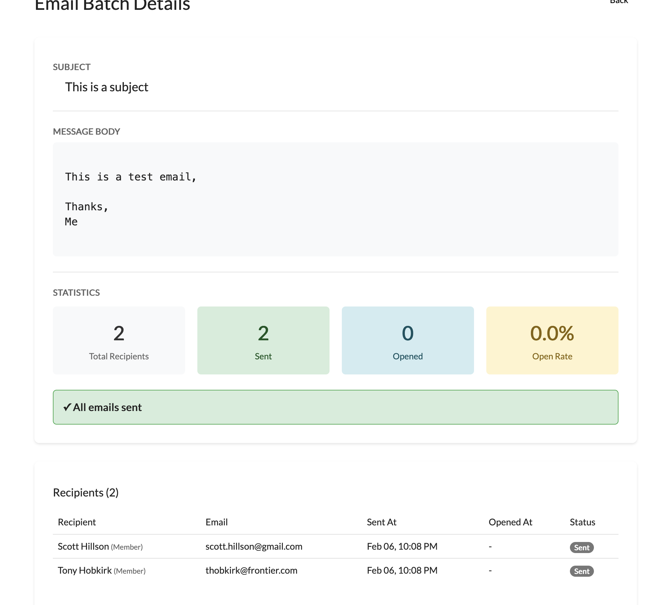 After you send the email, you can see how many recipients have received and opened it.