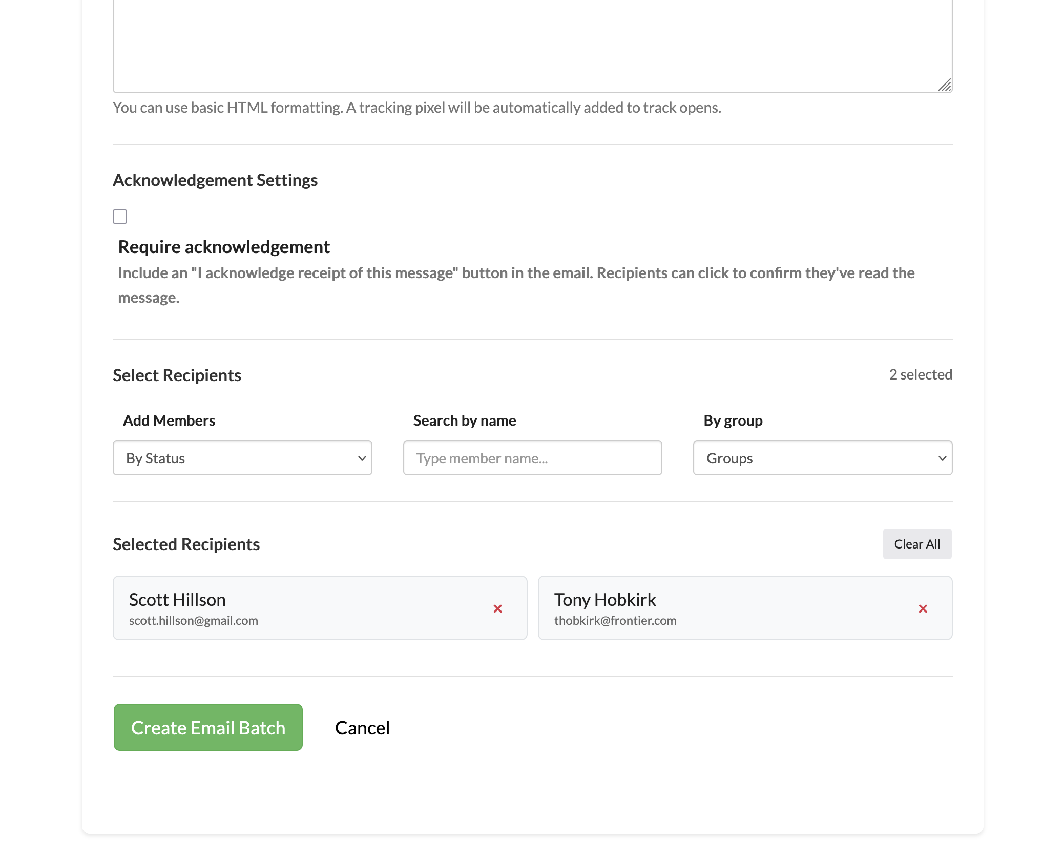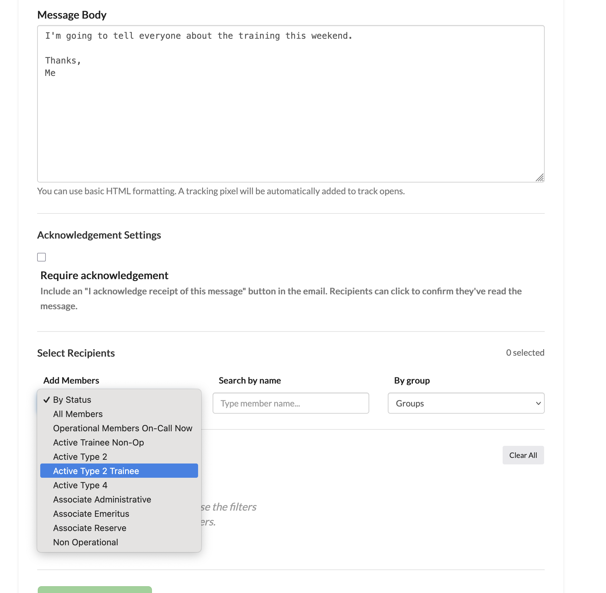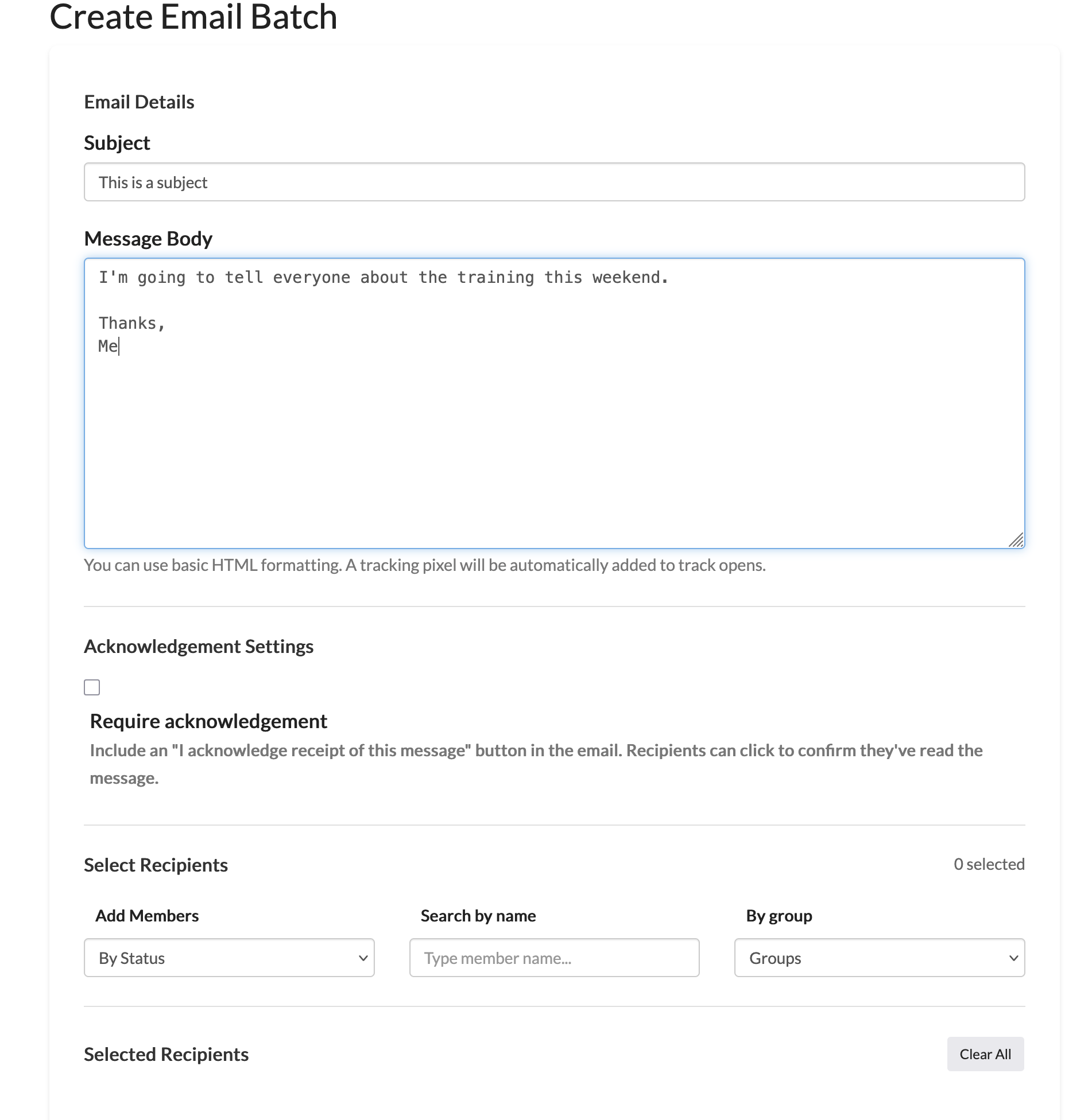 Optionally require acknowledgement if you want your recipients to confirm with you that they read your email