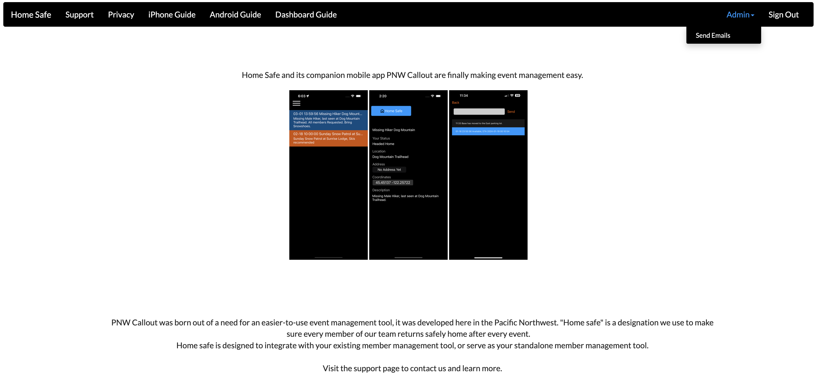 To send emails, choose the Send emails option in the admin dropdown