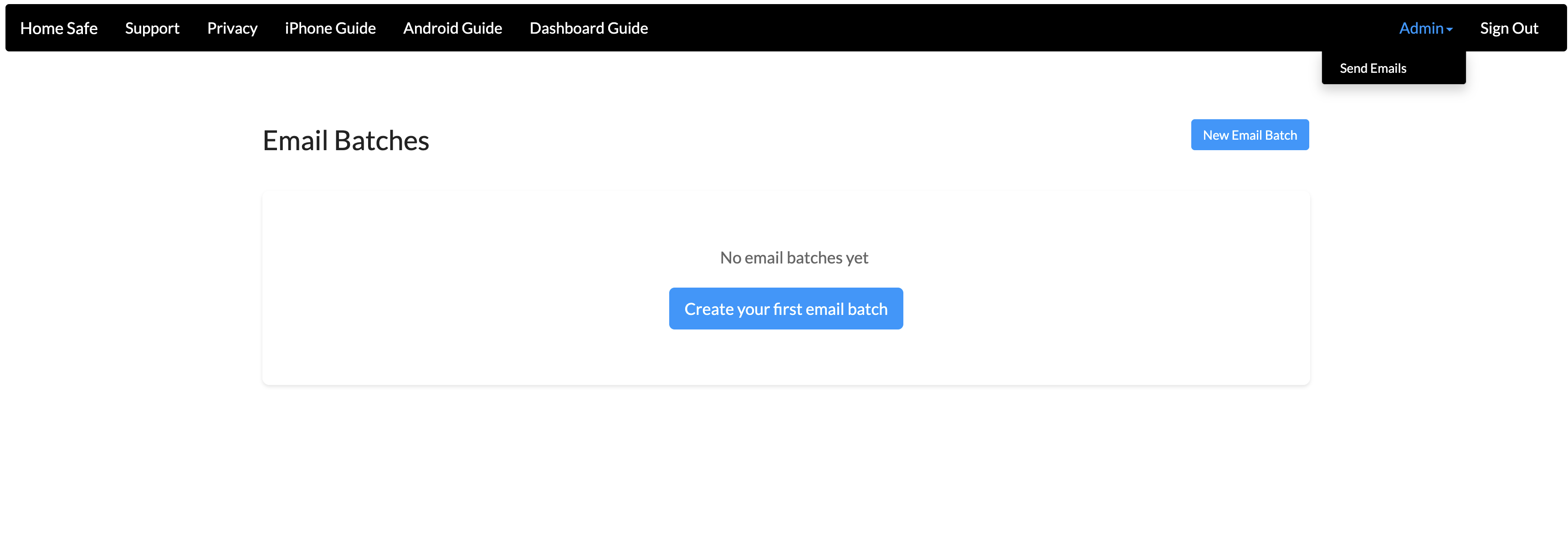 Choose New Email batch to send a new email